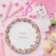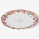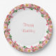 Rosa Blume Garland auf weißem Happy Birthday Paper Plate. Text kann für andere Veranstaltungen personalisiert sein!