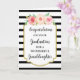 Herzlichen Glückwunsch zu Ihrer Abschluss-Karte für Enkelin mit schönen rosa Aquarellfarben-Blume, schwarz-weiß Streifen Muster und sentimental Vers.