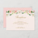 Eine Hochzeitsempfangskarte mit rosa blauem Aquarell, Blumenmuster und individuellem Text.