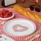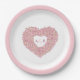Herzförmiger Kranz von Frühlingstulips Blume Hochzeitspapier Teller. Fügen Sie Ihre eigenen Paare Monogramm Initialen. In dunkelrot, sanft rosa und weiß. Andere Farben und passende Hochzeitsartikel sind erhältlich. Auch Farbanforderungen sind verfügbar. © Original Tinte zeichn und Design von Sarah Trett für www.mylittleedenweddings.com auf Zazzle.