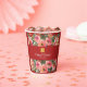 Rosa Blume im Hintergrund Doppelglückssymbol Pappbecher