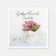 Die eleganten Pink Rose Blume im Teekessel Wedding Paper Napkins können mit den Namen der Braut und Bräutigam personalisiert werden und das Datum für die Verwendung in Ihrem extravaganten Garten Tee Party Brautparty oder Ehe Cocktail Party und Empfang. Diese hochwertigen Einwegservietten mit hohem Teegehalt verfügen über ein Blumenfoto mit einer blumengeschmückten Teekanne, die mit rosa Rosen und weißem Satin gefüllt ist.