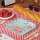 Die Blume blühen auf hellblauem Hintergrund. Diese auffälligen Teller werden sicherlich jede Feier aufheitern.