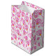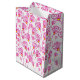 Rosa Blume Blume Blumenmuster Mittlere Geschenktasche entworfen von Nisha Prabhu. Diese mittelgroße Geschenktasche zeichnet sich durch ein wunderschönes Blumenmuster in rosa Blume aus. Die Tasche ist mit weißem Hintergrund gestaltet und mit feinen rosa Blume in verschiedenen Größen geschmückt. Die Blume sind in einem überdachten Muster angeordnet, wodurch ein optisch ansprechendes und fröhliches Design entsteht. Diese blumengeschenkte Tasche eignet sich für verschiedene Anlässe. Ob Geburtstagsgeschenk, Dankesgeschenk oder einfach nur eine Überraschung - diese Tasche verleiht Ihrem Geschenk eine besondere Touch an Eleganz und Charme. Mit seinem atemberaubend rosa Blume-Muster und der Liebe zum Detail wird dieser mittelgroße Geschenksack den Empfänger beeindrucken und begeistern. Es ermöglicht Ihnen, Ihr Geschenk im Stil zu präsentieren und gleichzeitig Freude und Glück zu verbreiten.