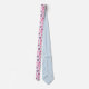 Eine Krawatte mit einem niedlichen Blumenmuster. Besteht aus rosa und lila unregelmäßigen Blume in einem Retro-60er-Groovy-Stil. Oft verblasste kleine blaue Herzen, pfeffern Sie den Hintergrund auf einem blass blauen Hintergrund.