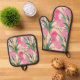 Rosa Blume Ofenhandschuh & Topflappen-Set