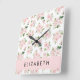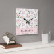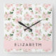 Rosa Blume, Rose, Aquarell-Blume, Ihr Name Quadratische Wanduhr