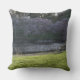 Schöne Aussicht auf den Park werfen Kissen mit beruhigenden rippling Teich. Vor dem 20"x20" Kissen ist ein hübscher naher Blick auf die Springtime-Bäume in Blüte mit rosa Blume über den wunderschönen Teich mit einer entspannenden Sitzbank aus Holz im Vordergrund. BACK of Pillow ist eine solide grüne Schattierung mit der Formulierung Holmdel Park, New Jersey, wo das Foto aufgenommen wurde. Original Fotografie Copyright © 2013 TamiraZDesign.