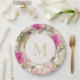 Rosa Aquarellfarbene Blume und Salbei-grüne Blätter Monogramm Papierplatte. Zum Geburtstag, Tee-Partys, Abendessen oder andere Veranstaltungen. Machen Sie Ihr nächstes Event ganz besonders, indem Sie Ihre Papierprodukte anpassen.