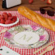 Rosa Blume Skalieren Grüne Blätter Monogramm erste Pappteller