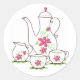 Rosa Blume Tee-Set-Aufkleber Runder Aufkleber