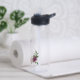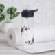 Romantische rosa Blume und weiße und grüne Blätter botanische Wasserflasche.
