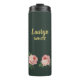 Rosa Blume und Blätter auf dunkelgrün Thermosbecher