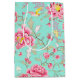 Rosa Blumenmuster mit Kolibris auf türkisfarbenem Hintergrund.
