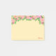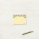 Rosa Blume und Kalligraphie auf hellgelb Post-it Klebezettel