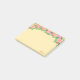 Schöne Aquarell rosa Blume und Kalligraphie auf hellgelben Post-it Notes.