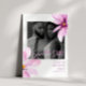 Elegantes Blumendesign mit modernen handgeschriebenen Stilschriften, Schwarz-weißem Foto und Aquarellfarbe Rosa Blume auf weißem Hintergrund. Text und Foto können leicht personalisiert werden für ein einzigartiges Design für Ihren besonderen Tag.