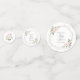 Fügen Sie Ihrer Babydusche mit diesen stilvollen und unvergesslichen Party eine persönliche Touch hinzu! Die Einrichtung besteht aus rosa und weiß getönten Blume, Grünpflanzen, Goldkonfetti und Goldrahmen auf weißem Hintergrund.