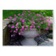 Rosa Petunien werden über den Seiten eines dekorativen Pflanzers verschüttet. Mit zusammenpassenden Briefmarken.