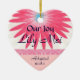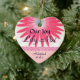 Herz geformte Andenkenverzierung macht für eine spezielle Weise des Teilens von Nachrichten über eine Adoption. Fertigen Sie mit Ihren Namen und Daten und Farben besonders an.