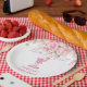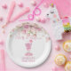 Rosa Blumenblätter und Prosecco-Brautparty Pappteller