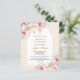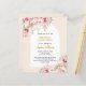 Ein weißer Bogen und ein zartes Beige mit pfirsichfarbenem Hintergrund. Rosa Blume und Button verzieren das Zimmer. Ein goldenes Kreuz. Personalisieren und fügen Sie einen Namen und Details. 1 Blatt = 1 Einladung mit Druckkante bis Kante.