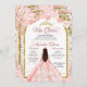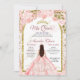 Eleganter goldener Bogen mit blumengeschmücktem Prinzessenkleid für die 15. Geburtstags-Quinceanera-Einladung.