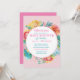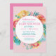 Farbenfrohe Frühlingsblumen Kinderdusche Einladung. Dieses niedliche Design ist umgeben von hübschen aquamarinen Blumen, Rosa und Gelb. Fügen Sie Ihre Party-Details hinzu, um zu sehen, wie Ihre Einladung vor dem Kauf aussehen wird. Unsere Vorlage macht es einfach, den Wortlaut für Ihre Babydusche zu ändern.