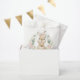 Dieses elegante Design besticht durch ein niedliches Babybunny, das mit herrlichen rosa Blume und einem Kranz in Aquarellen geschmückt ist