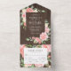 Rosa Blumengarten Rustikale Rose Hochzeit Holz All In One Einladung