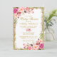 Aquarellfarben Rosa Blütenblüte und Gold Glitzer Kinderdusche Einladungskarte