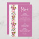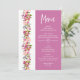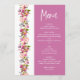 Entspannen Sie bei einem Hochzeitsempfang mit diesem atemberaubenden, rosa, floralen Hochzeitsmenü. Freuen Sie sich auf zarte Aquarellblumen in sanften Rosa und einen eleganten Schriftart für eine zeitlose, romantische Touch. Ideal für den Garten, Vintage oder klassische Hochzeitsthemen, wird dieses Menü Ihre Tischumgebung wunderbar ergänzen und Ihre Gäste beeindrucken.