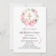 Ein eleganter, weißer Hintergrund, mit farbenfrohen rosa und weißen Blume in einem Kranz, einem rosa Bogen und einem goldenen Kreuz geschmückt. Personalisieren und fügen Sie einen Namen und Details.