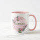 Genießen Sie Ihr Getränk in dieser zarten, rosafarbenen, blumenreichen Tasse mit einer aufregenden Botschaft.