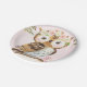 Keine Personalisierung Rosa Blumenkronenschale Geburtstagsplatte Sweet Eule themed Geburtstagsplatte mit einer Aquarelluhu auf einem rosa Hintergrund.