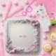 Schöner rosa Blumenrahmen-Papierteller