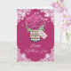 Schöne florale Happy Mother's Day Karte mit einem rosa Hydrangea und Babyatebouquet in einem Maurerkrug. Personalisieren Sie diese benutzerdefinierte Karte einfach, um eine einzigartige Muttertagskarte zu erstellen. Diese Vorlage kann für jeden Anlass personalisiert werden.