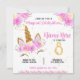 Rosa Blumenschlauch Gold Glitzer Geburtstag Einladung. Machen Sie eine Erklärung mit dieser personalisierten, thematischen Geburtstagsfeier. Sie können es einfach per Text versenden oder ausdrucken und an Ihre Gäste schicken.