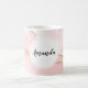 Eine Tasse mit elegantem und trendigem Design. Rosa, blaue Wasserfarbe mit einem subtilen Marmoragat-Look und goldglattem Band dazwischen. Ein Kreis überlagert sich oben mit deinem Namen.