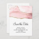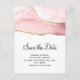 Save the Date Hochzeitspostkarte mit elegantem und trendigem Design. Rosa, blaue Wasserfarbe mit einem subtilen Marmoragat-Look und goldglattem Band dazwischen.
