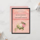 Eine Hochzeitseinladung mit einem Blumenstrauß mit weißen und rosa Blume. Ein Imitat Diamant Tiara. Der Hintergrund ist rosa mit einem Blumenmuster. Hübsches und elegantes Design.