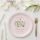 Rosa Hintergrundfarbe mit weißen Blume, grünem Blattwerk und goldenen Akzenten, darunter ein goldenes Kreuz. Personalisieren Sie den Text für Ihren besonderen Tag.