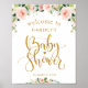 Ein wunderschönes, modernes Blumendesign mit goldgelbem Text und gemalten Aquarellblüten-Blume. Der Text und die Farben dieses Babydusche-Begrüßungszeichens können bearbeitet werden.