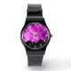 Rosa Blütenblätter auf schwarzen Blume Armbanduhr