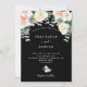 Eine trendige, farbenfrohe, blumengeschmückte Hochzeitsveranstaltung in Rosa, Rose und Weiß. Eine dunkle Nacht, schwarzer Hintergrund vorne. Weiße Blumen, goldene Rose, Rosa mit Eukaluptusgrün, große, üppige Blume, üppige Aquarellbilder. Personalisieren und fügen Sie Ihre Namen und Hochzeitsdetails. Weißer Text. Zurück: Schwarzer Hintergrund.