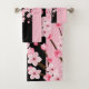 Rosa Blütenblüten Schwarz-Pink-Handtuch Badhandtuch Set