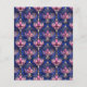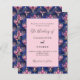 Navy blauer Hintergrund mit einem Retro-Stil in rosa Blumenmuster verziert. Personalisieren und fügen Sie Ihre Namen und die Details. 1 Blatt = 1 Einladung mit Druckkante bis Kante.