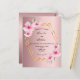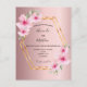 Eine elegante tropische Sommerhochzeit. Mit einem geometrischen Rahmen in goldenem Imitat, der mit hellrosa Hibiskus dekoriert ist, Blume tropische Blumen mit etwas Grün. Ein rot-rosa Imitat mit metallischem Hintergrund. Die Vornamen der Braut und des Bräutigams werden mit einem modernen Handgeflecht geschrieben. Schwarzer Text. Zurück: Imitate rösteln auf metallischem Hintergrund. Tipp: Wenn Sie es nicht so gewollt haben, dass es wie eine Postkarte aussieht, klicken Sie auf Anpassen, gehen Sie auf die Rückseite und entfernen Sie den Trenner und posten Sie die Briefmarke.