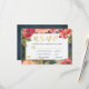 Romantischer Hochzeitstag RSVP mit Menüoptionen mit schönen rot-rosa und pfirsichfarbenen Rose und Blüten, zwei kleinen goldenen Herzen und einem goldenen Rahmen auf dunkelblauem Kalkboard Hintergrund. — Ideal für Frühling oder Sommernacht | Gartenterrasse | Vintage romantische Hochzeit.