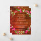 Eine rustikale Holzlandschaft mit rosa Blume, grünen Zweigen und Blätter, die das Oben und das Ende der Einladung umrahmen. Der Schriftart verleiht ihm das Aussehen der Eleganz. Personalisieren Sie diese Vorlage, um Ihre Informationen auf der Vorder- und Rückseite der Karte hinzuzufügen. Das Design ist ein Blumenkranz und kann auf die Karte angepasst werden. Klicken Sie, um weitere Änderungen vorzunehmen. Alles ist anpassbar.